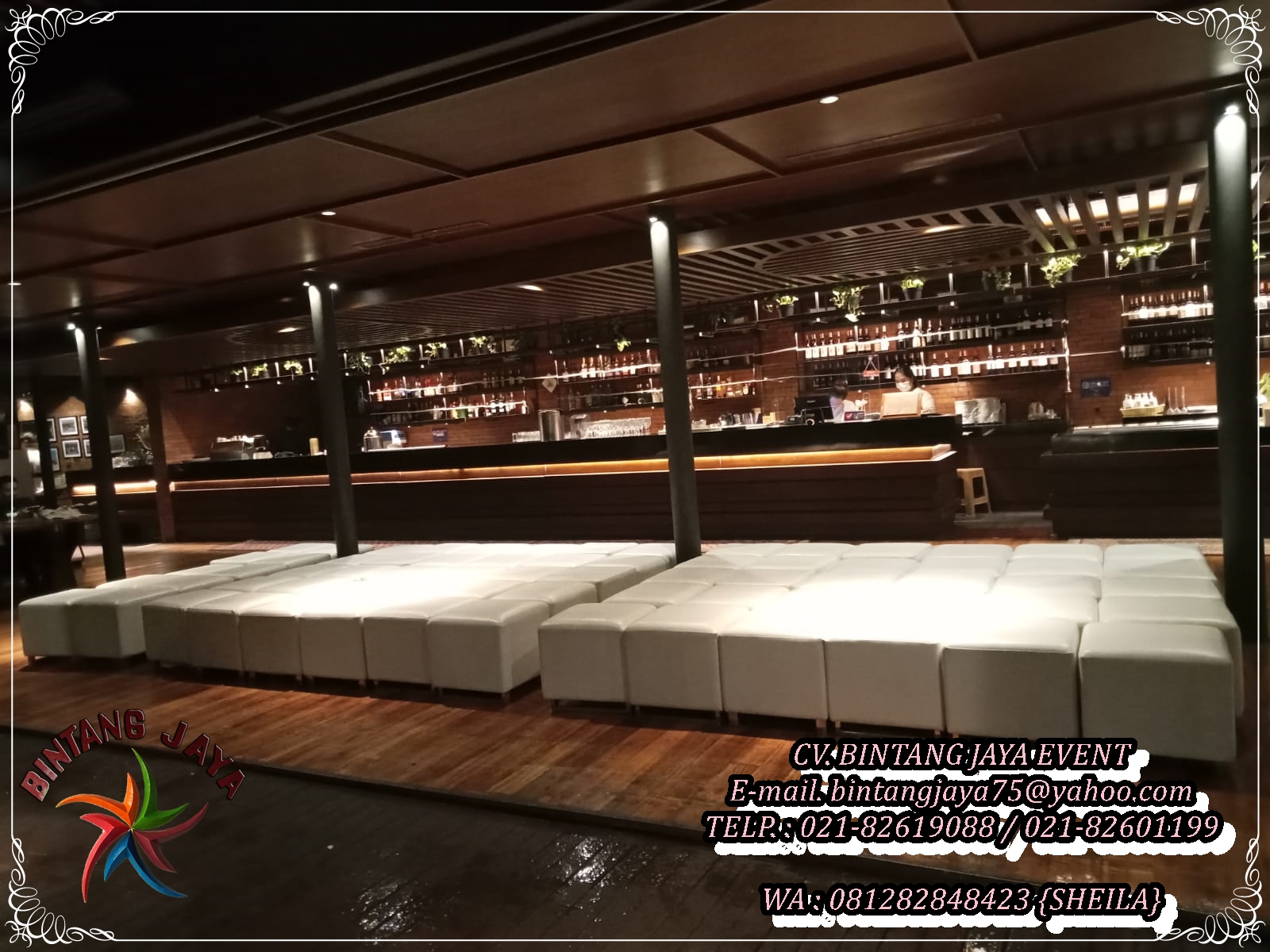 CV. Bintang Jaya Event adalah perusahaan yang bergerak dalam bidang persewaaan alat event terlengkap dan terpercaya yang menyewakan puff kulit oscar kaki stainless Cikarang. Dengan kualitas sofa puff terbaik, tim yang sangat profesional dan terampil, serta pelayanan sewa yang memuaskan untuk anda.