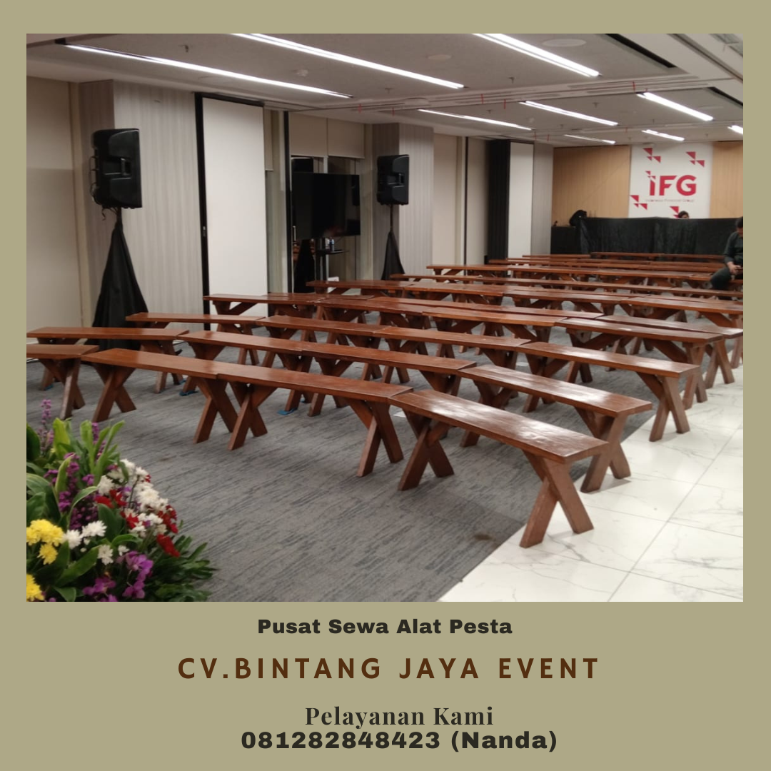 Solusi Sewa Bangku Taman Kayu Outdoor Area Jakarta – Semua akan anda dapatkan hanya di CV. Bintang Jaya Event. Merupakan pusat sewa alat event terbesar di Bekasi yang mampu melayani segala kebutuhan acara anda mulai dari peresmian, konferensi, seminar, pernikahan, ulang tahun, grand opening, dan berbagai jenis acara lainnya.