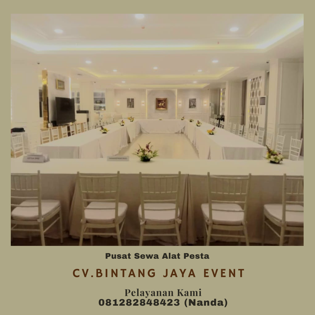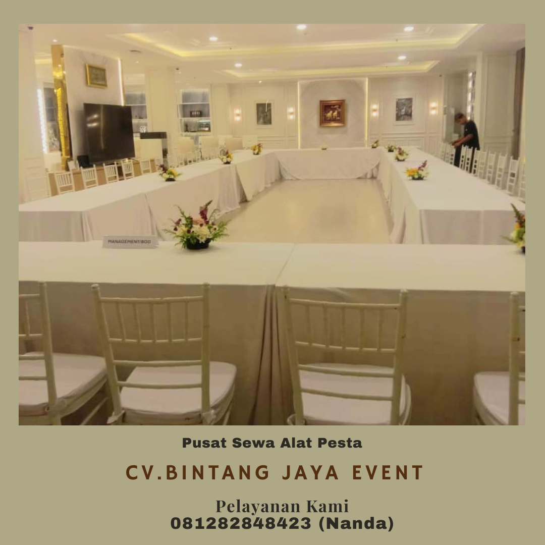 CV. Bintang Jaya Event adalah Pusat Sewa Meja Panjang Dan Kursi Kayu VIP Tiffany Putih Area Bandung yang siap melayani dan memenuhi kebutuhan acara anda dari mulai persiapan hingga pengiriman dan penjemputan kembali produknya.