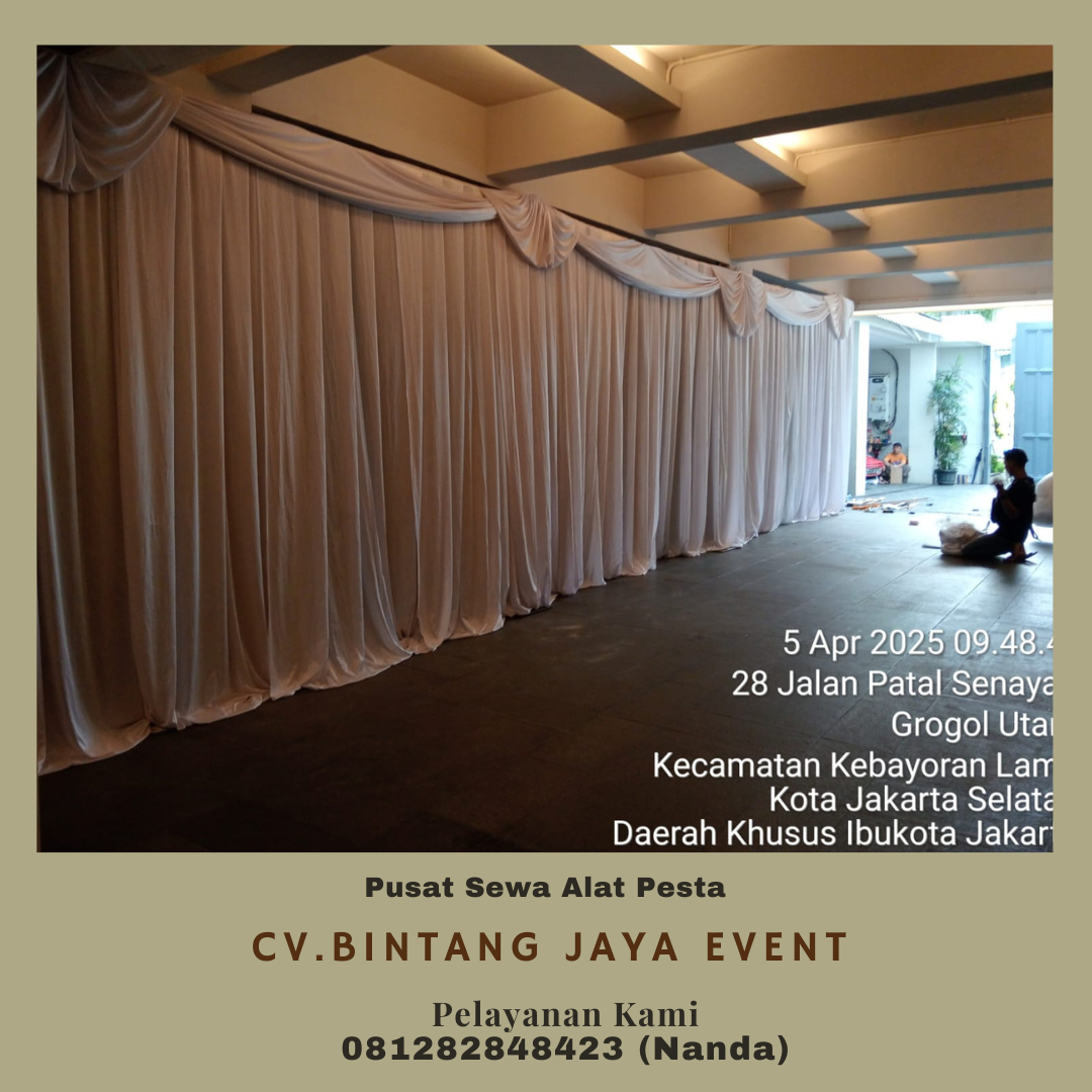 Kami menawarkan harga sewa tirai yang lebih terjangkau dan gratis ongkir sesuai syarat dan ketentuan kami, jadi untuk anda yang ingin menghemat budget dalam membuat suatu acara, CV. Bintang Jaya akan menjadi solusi yang pas untuk memenuhi segala kebutuhan acara anda.