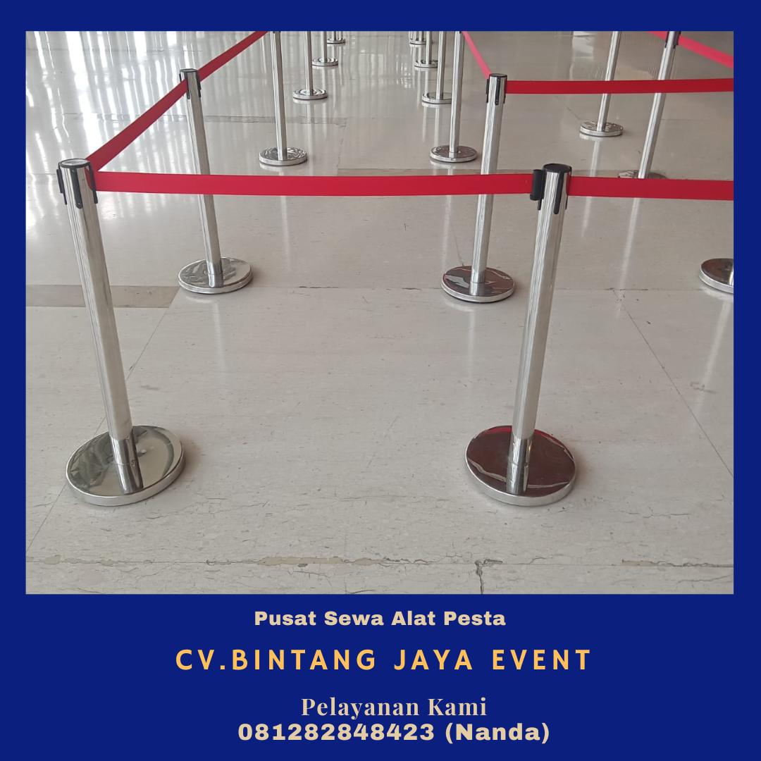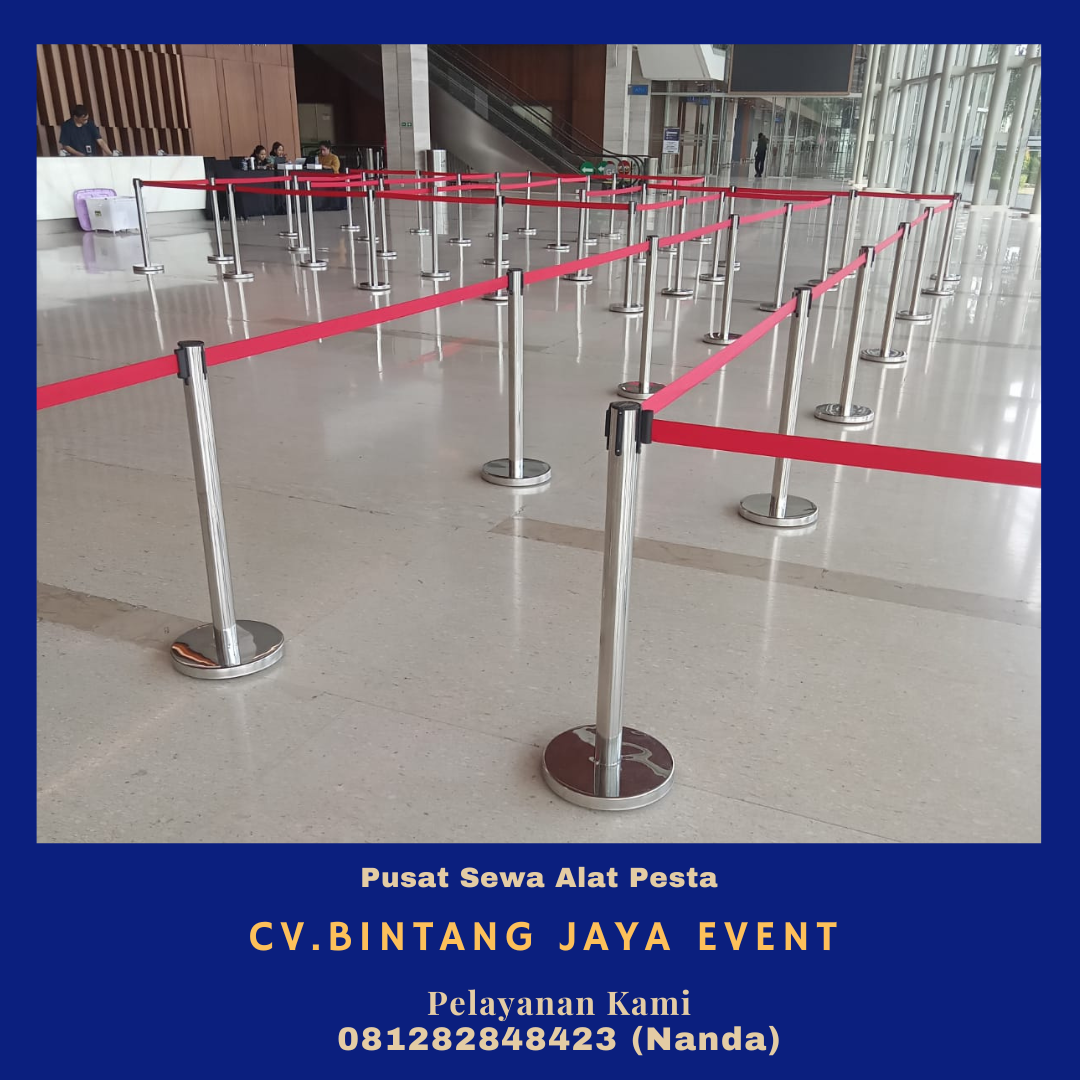 Jasa Sewa Tiang Antrian Anti Karat Harga Terjangkau Bogor. Menjaga keteraturan antrean menjadi hal penting dalam berbagai acara, mulai dari pameran, konser, seminar, hingga kegiatan pemerintahan dan perkantoran. CV. Bintang Jaya menyediakan jasa sewa tiang antrian dan berbagai perlengkapan event berkualitas di wilayah Jabodetabek dan sekitarnya.