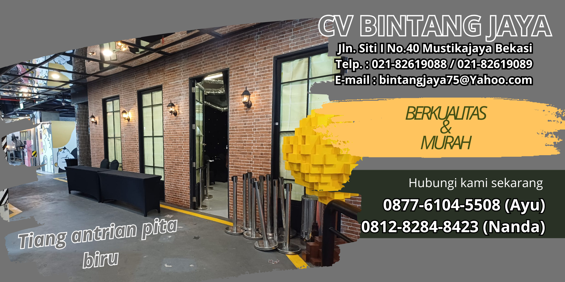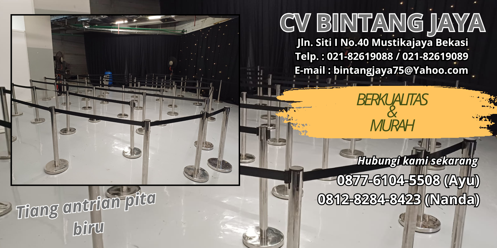 Pusat sewa tiang pembatas antrian stainless dengan pita tarik biru jakarta dengan kualitas yang terjamin bermutu dan harga sewa yang murah tentunya. CV BINTANG JAYA GROUP menyediakan berbagai macam produk untuk berbagai macam acara event. Seperti tiang pembatas antrian stainless ini yang biasanya dipakai pada acara pembuka’an produk, atau lauching produk dan seminar lainnya. Ditambah dengan pita tarik nya yang berwarna biru yang kami sediakan ini, warna bisa sesuai yang di inginkan pelanggan, jadi tidak perlu khawatir dengan segala bentuk desain, dekorasi dan penataan bisa kami atur dengan tim CV BINTANG JAYA GROUP.