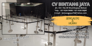 PUSAT SEWA TIANG PEMBATAS ANTRIAN STAINLESS DENGAN PITA TARIK BIRU JAKARTA