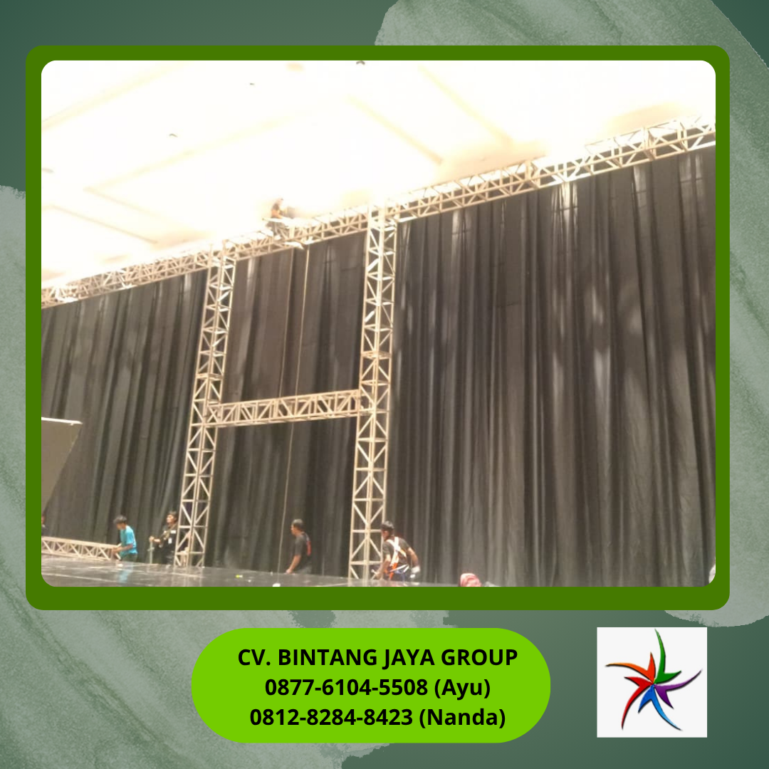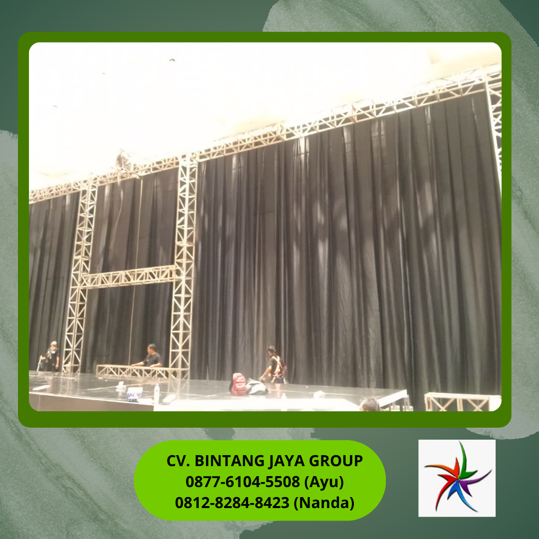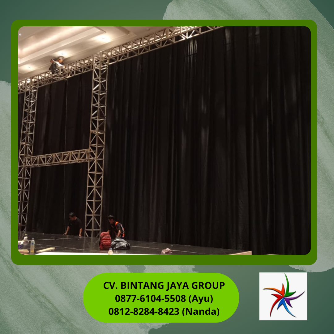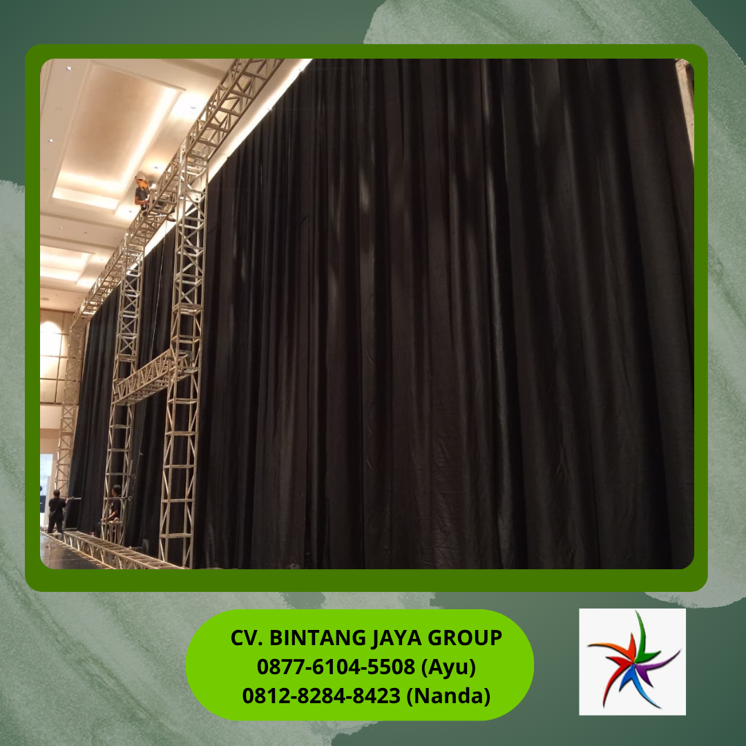 Sewa Tirai Hitam Tinggi 8 Meter Jakarta dari CV Bintang Jaya adalah solusi profesional buat kamu yang ingin menciptakan latar belakang panggung yang solid, dramatis, dan bebas distraksi visual untuk acara konser, teater, atau corporate gathering. Karena itu, tirai setinggi langit ini bakal langsung mengubah venue biasa menjadi panggung teatrikal yang memukau.